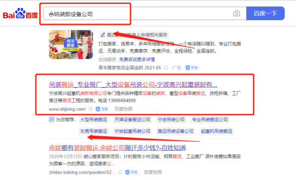 我們公司與寧波*興起重裝卸有限公司合作中,對這個公司所經營的裝卸設備這個行業提供了SEO,與該公司的合作,更多的客戶讓我們公司為其提供關鍵詞搜索排名,通過每一次合作,我們公司不斷完善自己,同時希望合作伙伴在經營的路上越來越好。