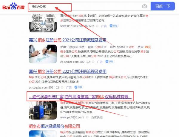 桐鄉雙*機械有限公司百度關鍵詞排名保證在首頁效果