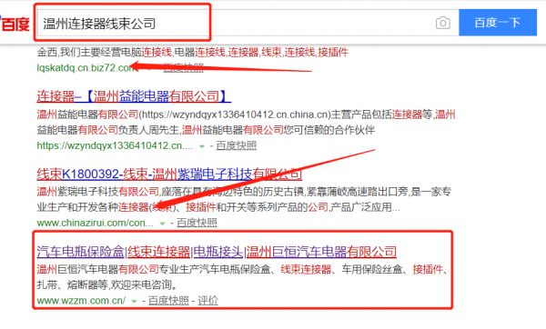 我們公司與溫州巨恒汽車電器有限公司合作中,對這個(gè)公司所經(jīng)營的連接器線束這個(gè)行業(yè)提供了搜索引擎優(yōu)化推廣,與該公司的合作,更多的客戶讓我們公司為其提供搜索引擎優(yōu)化推廣,通過每一次合作,我們公司不斷完善自己,同時(shí)希望合作伙伴在經(jīng)營的路上越來越好。