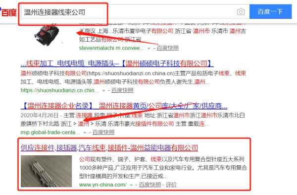 我們公司與溫州市益能電器有限公司合作中,對這個公司所經營的連接器線束這個行業提供了搜索引擎優化推廣,與該公司的合作,更多的客戶讓我們公司為其提供搜索引擎優化推廣,通過每一次合作,我們公司不斷完善自己,同時希望合作伙伴在經營的路上越來越好。