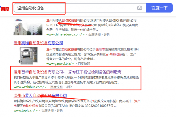 我們公司與溫州*華自動(dòng)化設(shè)備有限公司合作中,對(duì)這個(gè)公司所經(jīng)營(yíng)的自動(dòng)化設(shè)備這個(gè)行業(yè)提供了百度快照排名,與該公司的合作,更多的客戶讓我們公司為其提供百度快照排名,通過(guò)每一次合作,我們公司不斷完善自己,同時(shí)希望合作伙伴在經(jīng)營(yíng)的路上越來(lái)越好。