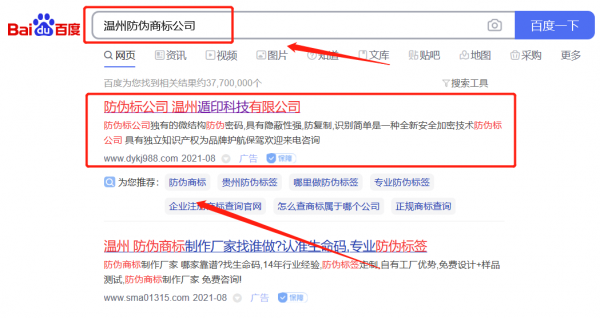 我們公司與溫州遁*科技有限公司合作中,對(duì)這個(gè)公司所經(jīng)營(yíng)的防偽商標(biāo)這個(gè)行業(yè)提供了優(yōu)化排名,與該公司的合作,更多的客戶讓我們公司為其提供百度快照排名,通過每一次合作,我們公司不斷完善自己,同時(shí)希望合作伙伴在經(jīng)營(yíng)的路上越來越好。