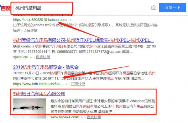 我們公司與杭州皓日汽車用品有限公司合作中,對(duì)這個(gè)公司所經(jīng)營(yíng)的汽摩用品這個(gè)行業(yè)提供了快速排名,與該公司的合作,更多的客戶讓我們公司為其提供快速排名,通過每一次合作,我們公司不斷完善自己,同時(shí)希望合作伙伴在經(jīng)營(yíng)的路上越來(lái)越好。