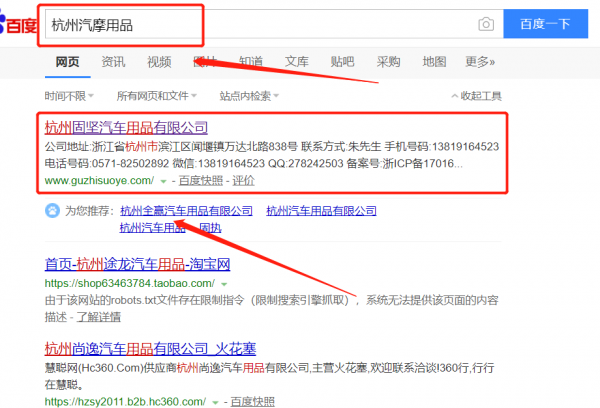 杭州固堅汽車用品有限公司與我司簽下百度霸屏協議