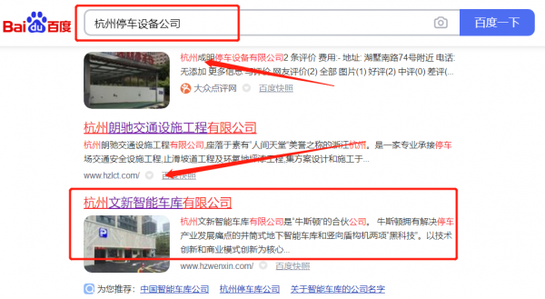 杭州文*智能車(chē)庫(kù)有限公司網(wǎng)站排名排名效果展示