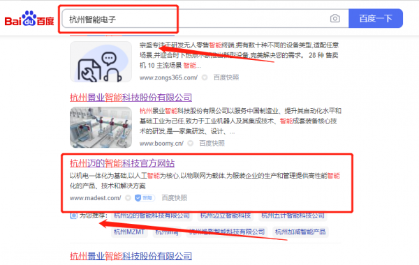 杭州邁*智能科技有限公司關鍵詞排名排名效果展示