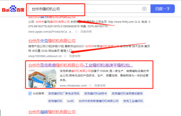 臺州市洛*希德縫紉機(jī)有限公司SEO優(yōu)化最快上詞效果展示