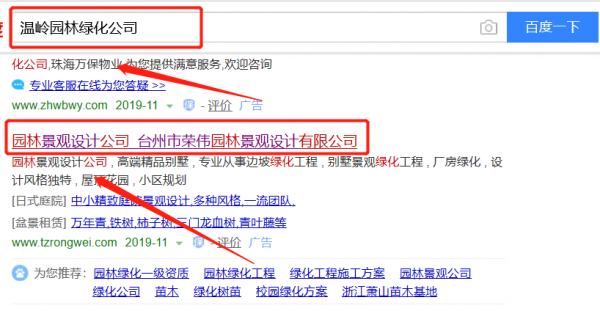 臺州榮偉創景園林工程有限公司選用我司企業園林綠化的網站優化產品,其SEO關鍵詞有園林綠化。快速優化系統火速推采用智能數據系統,效果一目了然,包括關鍵詞排名,消費,余額等,并通過大量的數據分析優化廣告效果。臺州榮偉創景園林工程有限公司成立于2010年,是經溫嶺市市場監督管理局審核的有資質的公司,其統一社會信用代碼:91331002562372092T。公司地址:浙江省臺州市椒江區光明路2號。
