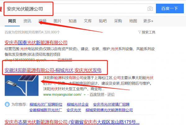 我們公司與安徽沐陽新能源有限公司合作中,對(duì)這個(gè)公司所經(jīng)營的光伏能源這個(gè)行業(yè)提供了百度快照排名,與該公司的合作,更多的客戶讓我們公司為其提供百度快照排名,通過每一次合作,我們公司不斷完善自己,同時(shí)希望合作伙伴在經(jīng)營的路上越來越好。