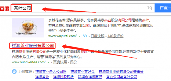 祥源茶業股份有限公司與我司做百度快照排名項目