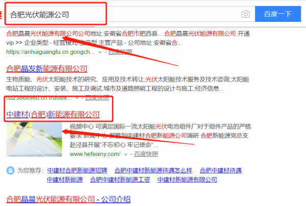 我們公司與中建材(合肥)新能源有限公司合作中,對這個公司所經營的光伏能源這個行業提供了百度快照排名,與該公司的合作,更多的客戶讓我們公司為其提供百度快照排名,通過每一次合作,我們公司不斷完善自己,同時希望合作伙伴在經營的路上越來越好。