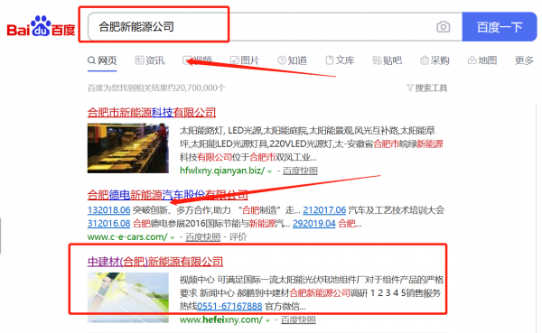 我們公司與中*材(合肥)新能源有限公司合作中,對這個(gè)公司所經(jīng)營的新能源這個(gè)行業(yè)提供了百度快照排名,與該公司的合作,更多的客戶讓我們公司為其提供百度快照排名,通過每一次合作,我們公司不斷完善自己,同時(shí)希望合作伙伴在經(jīng)營的路上越來越好。