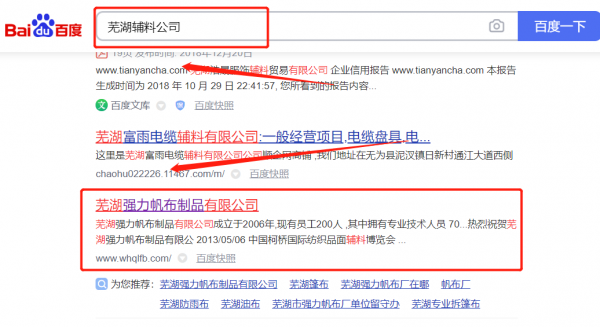 蕪湖*力帆布制品有限公司網絡營銷最快上詞效果展示