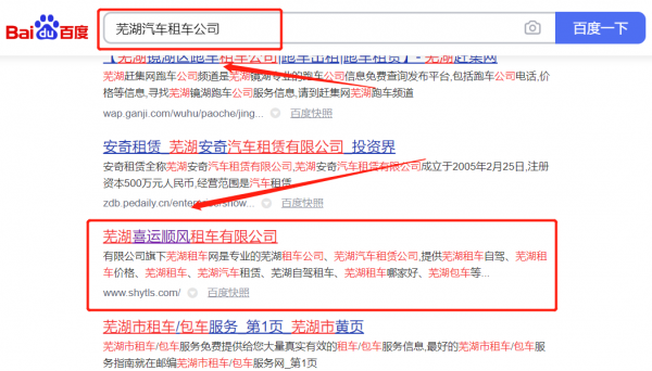 蕪湖喜*順風租車有限公司萬詞霸屏到首頁無排名不收費