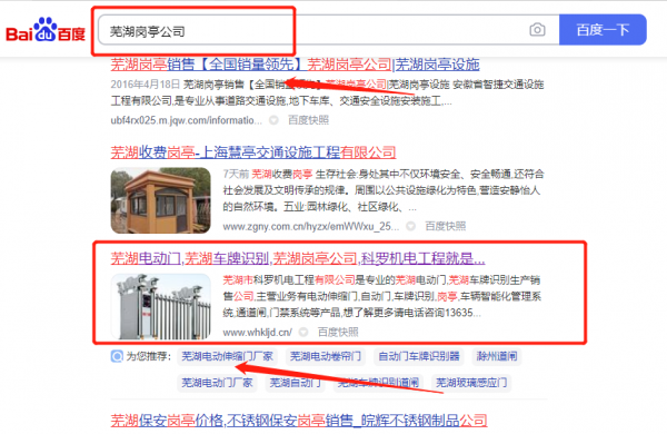 蕪湖科*機電工程有限公司選用我司企業崗亭的網站優化產品,其SEO關鍵詞有崗亭。專家1對1的定制解決方案,篩選的關鍵字40-60天就能排名上去。若沒有達到效果,除服務費全部退還,讓企業無后顧之憂。蕪湖科*機電工程有限公司成立于2017年,是經蕪湖市市場監督管理局審核的有資質的公司,其統一社會信用代碼:91340207MA**HA781Y。公司地址:安徽省蕪湖市鳩江區南翔萬商商貿物流城D區2#樓1207室。