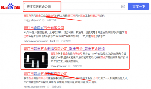 晉江市聯(lián)*五金制造有限公司關鍵詞推廣排名效果展示