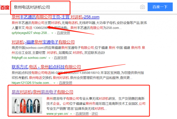 我們公司與泉州易言電子有限公司合作中,對這個(gè)公司所經(jīng)營的電話對講機(jī)這個(gè)行業(yè)提供了關(guān)鍵詞搜索排名,與該公司的合作,更多的客戶讓我們公司為其提供關(guān)鍵詞搜索排名,通過每一次合作,我們公司不斷完善自己,同時(shí)希望合作伙伴在經(jīng)營的路上越來越好。