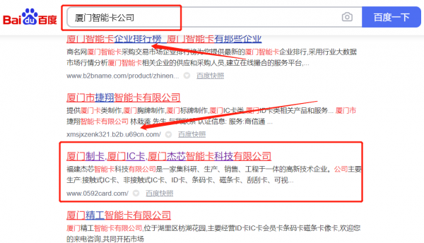 我們公司與福建*芯智能卡科技有限公司合作中,對這個公司所經營的智能卡這個行業提供了關鍵詞排名,與該公司的合作,更多的客戶讓我們公司為其提供百度快照排名,通過每一次合作,我們公司不斷完善自己,同時希望合作伙伴在經營的路上越來越好。