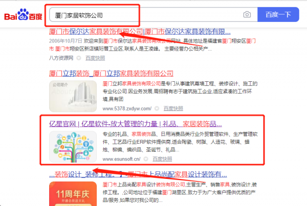 廈門*星軟件有限公司選用我司企業家居軟飾的網站優化產品,其SEO關鍵詞有家居軟飾。通過SEO做好排名后,一般可以保持半年以上的良好效果,大大節約成本,有效提升企業品牌知名度。按日收費,不限次數點擊,為企業呈現每一步優化效果,有據可循,并承諾關鍵字上了百度首頁才扣費。廈門*星軟件有限公司成立于2004年,是經廈門市市場監督管理局審核的有資質的公司,其統一社會信用代碼:91350200**92525491。公司地址:福建省廈門市軟件園二期觀日路58號601單元。