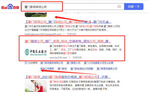 廈門老*音家政服務有限公司整站優化快上詞效果展示