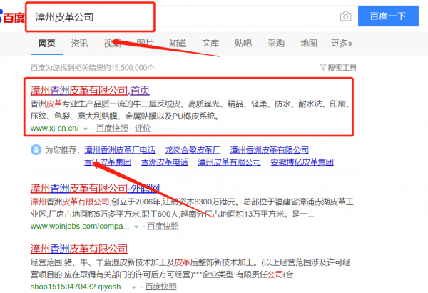 漳州香*皮革有限公司選用我司企業皮革的網站優化產品,其SEO關鍵詞有皮革。無論你關鍵詞是在20名內、30名內、還是50名內。我們都可以在最短時間優化至搜索引擎的首頁。提供后臺管理,排名查詢、關鍵詞管理、財務扣費一目了然,一鍵操作。漳州香*皮革有限公司成立于2006年,是經漳州市市場監督管理局審核的有資質的公司,其統一社會信用代碼:9135062**890480006。公司地址:福建省漳州市漳浦縣赤湖工業區。