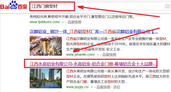 我們公司與江西永高鋁業有限公司合作中,對這個公司所經營的門窗型材這個行業提供了百度快照排名,與該公司的合作,更多的客戶讓我們公司為其提供百度快照排名,通過每一次合作,我們公司不斷完善自己,同時希望合作伙伴在經營的路上越來越好。