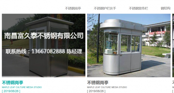 南昌富久泰不銹鋼有限公司坐落于美麗的英雄城——江西南昌,是一家專業(yè)從事不銹鋼護(hù)欄、護(hù)手、不銹鋼宣傳欄、鋼結(jié)構(gòu)、卷閘門、不銹鋼崗?fù)さ葮I(yè)務(wù),該公司主要領(lǐng)導(dǎo)在實(shí)踐中有多年的不銹鋼技術(shù)的研究和總結(jié),具有相當(dāng)規(guī)模的專業(yè)不銹鋼制品以及鋼膜結(jié)構(gòu)制造公司公司堅(jiān)持“誠(chéng)信為本、質(zhì)量為先、合作共贏”為經(jīng)營(yíng)理念,所有制作及施工程序都在嚴(yán)格的質(zhì)量監(jiān)控下執(zhí)行規(guī)范操作,承接的工程到目前為止,無一例失敗的產(chǎn)品。贏得了各階的信賴,成為客戶的優(yōu)先選擇。富久泰將以沒有止境只有更好為奮斗目標(biāo),與時(shí)俱進(jìn),不斷創(chuàng)新,追求優(yōu)越,追求更高的藝術(shù)境界,用出色的作品感謝您的支持和厚愛。公司自發(fā)展來自合作,成功源于創(chuàng)新,“用心制造,鑄就品牌”是我們的核心理念、追求優(yōu)越、精益求精,我們將一如既往不斷研發(fā)和創(chuàng)新,制造優(yōu)質(zhì)的產(chǎn)品,滿足消費(fèi)者的需求,在未來的日子里,我們將與新老客戶攜手并進(jìn),共創(chuàng)輝煌!