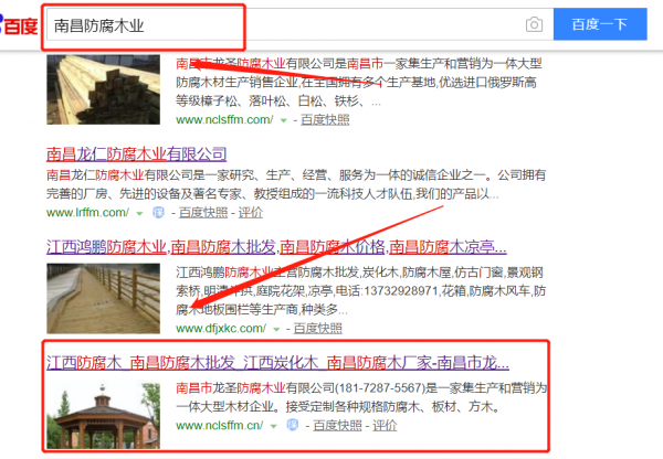 我們公司與南昌市龍圣防腐木業有限公司合作中,對這個公司所經營的防腐木業這個行業提供了快速排名,與該公司的合作,更多的客戶讓我們公司為其提供快速排名,通過每一次合作,我們公司不斷完善自己,同時希望合作伙伴在經營的路上越來越好。