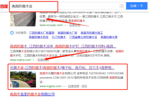 我們公司與南昌市光景防腐木業(yè)有限公司合作中,對(duì)這個(gè)公司所經(jīng)營(yíng)的防腐木業(yè)這個(gè)行業(yè)提供了快速排名,與該公司的合作,更多的客戶讓我們公司為其提供快速排名,通過(guò)每一次合作,我們公司不斷完善自己,同時(shí)希望合作伙伴在經(jīng)營(yíng)的路上越來(lái)越好。
