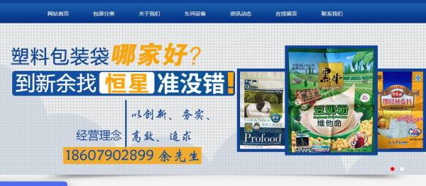 新余市恒*包裝有限公司選用我司企業紙布包裝行業的網站優化產品,其SEO關鍵詞有 真空包裝袋,自動包裝膜,自立拉鏈袋,塑料包裝袋。其特點是用很合適的展示方式、展示效果、站點框架,把客戶及其用戶很關心的問題突出表現;并以簡潔明朗的設計風格,清晰展現公司水平實力,確保一秒抓住目標用戶眼球,給用戶留下良好的第一印象。新余市恒*包裝有限公司成立于2006年,是經新余市市場監督管理局審核的有資質的公司,其統一社會信用代碼:91360500792**11802。公司地址:新余市經濟開發區光伏路76號。