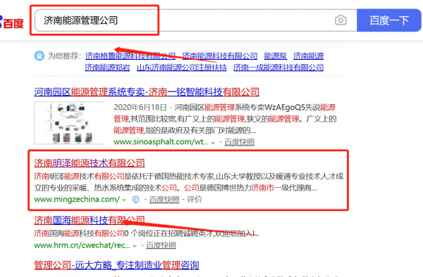 我們公司與濟(jì)南*澤能源技術(shù)有限公司合作中,對(duì)這個(gè)公司所經(jīng)營(yíng)的能源管理這個(gè)行業(yè)提供了百度快照排名,與該公司的合作,更多的客戶讓我們公司為其提供百度快照排名,通過每一次合作,我們公司不斷完善自己,同時(shí)希望合作伙伴在經(jīng)營(yíng)的路上越來越好。