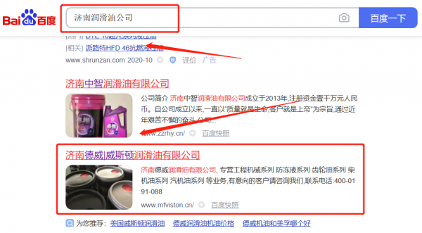 濟南德*潤滑油有限公司關鍵詞排名到首頁按天扣費