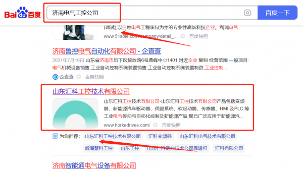 山東匯*工控技術有限公司百度排名快上詞效果展示