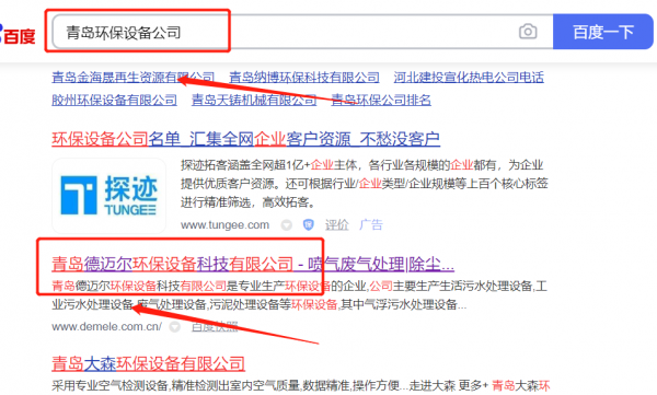 青島*邁爾環保設備科技有限公司百度排名到首頁無排名不收費