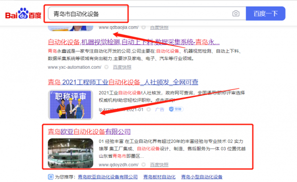 青島*亞自動化設(shè)備有限公司網(wǎng)絡推廣排名效果展示