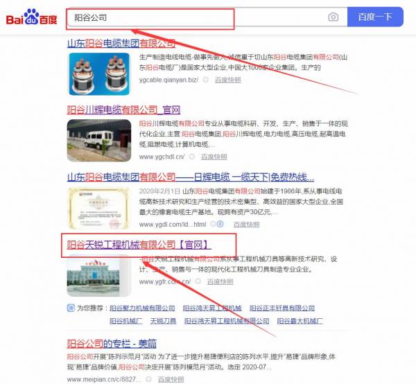 陽谷天*工程機械有限公司網站優化最快上詞效果展示
