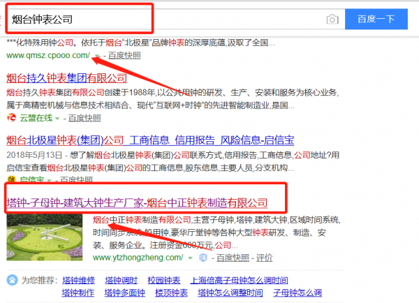 煙臺中正鐘表制造有限公司與我司簽下百度霸屏協(xié)議