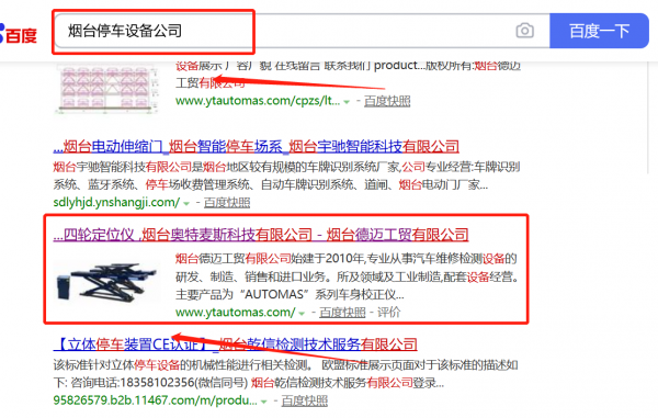 我們公司與煙臺*邁工貿有限公司合作中,對這個公司所經營的停車設備這個行業提供了網站建設制作設計,與該公司的合作,更多的客戶讓我們公司為其提供SEO網站優化,通過每一次合作,我們公司不斷完善自己,同時希望合作伙伴在經營的路上越來越好。