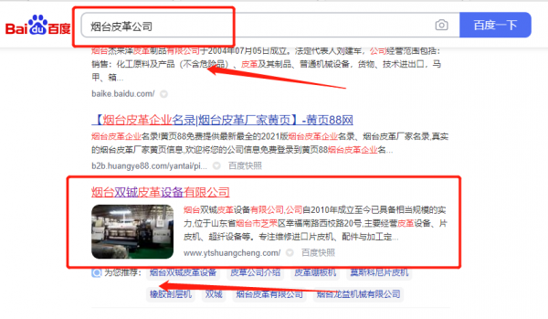 煙臺(tái)雙*皮革設(shè)備有限公司百度排名排名效果展示