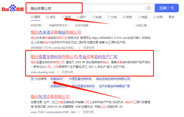 煙臺亞*生物科技有限公司百度排名最快上詞效果展示