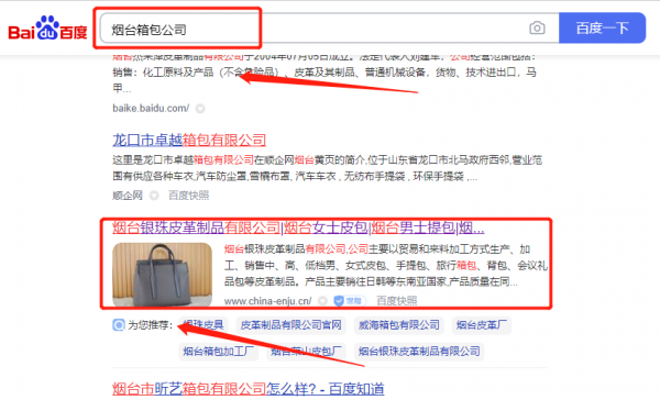 煙臺銀*皮革制品有限公司網絡推廣快上詞效果展示