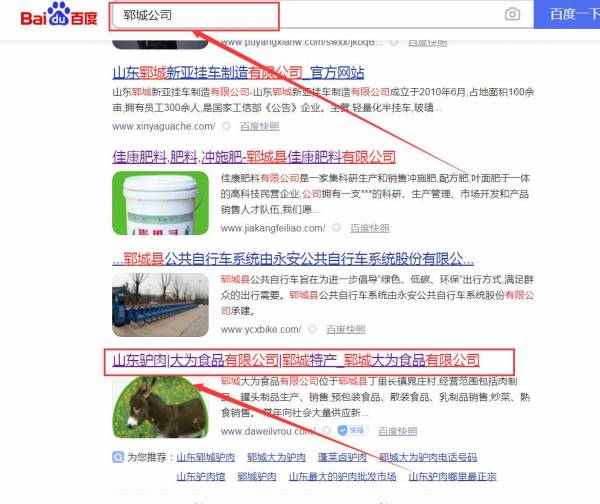 鄆城大*食品有限公司網(wǎng)站優(yōu)化最快上詞效果展示