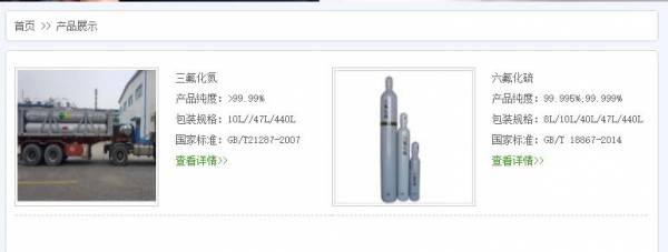 公司主要產(chǎn)品包括:三氟化氮、六氟化硫、六氟化鎢、四氟化碳、五氟化碘、六氟丁二烯、八氟環(huán)丁烷等。
