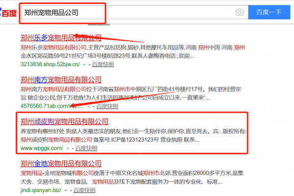 我們公司與鄭州頑皮狗寵物用品有限公司合作中,對這個公司所經營的寵物用品這個行業提供了百度快照排名,與該公司的合作,更多的客戶讓我們公司為其提供百度快照排名,通過每一次合作,我們公司不斷完善自己,同時希望合作伙伴在經營的路上越來越好。