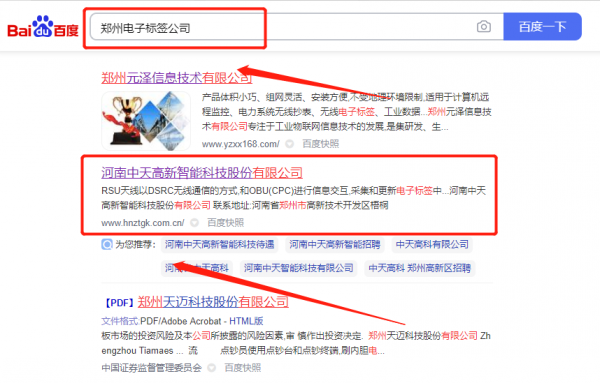 我們公司與河南*天高新智能科技股份有限公司合作中,對這個公司所經營的電子標簽這個行業提供了萬詞霸屏,與該公司的合作,更多的客戶讓我們公司為其提供關鍵詞搜索排名,通過每一次合作,我們公司不斷完善自己,同時希望合作伙伴在經營的路上越來越好。