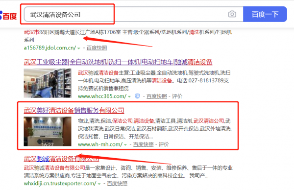 武漢*好清潔設備銷售服務有限公司選用我司企業清潔設備的網站優化產品,其SEO關鍵詞有清潔設備。SEO核心優化技術能夠輕松做到優化一個核心詞,匹配一批關鍵詞到首頁,為網站帶來更多高頻流量!能夠根據不同的搜索引擎的特征,進行針對性的排名優化,排名效果覆蓋各大主流搜索引擎。武漢*好清潔設備銷售服務有限公司成立于1997年,是經武漢市市場監督管理局審核的有資質的公司,其統一社會信用代碼:91420102**14268183。公司地址:湖北省武漢市江岸區江大路20號大江凌霄苑1幢2單元4層1號。