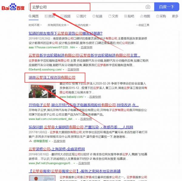 湖南云夢*工程咨詢有限公司百度排名到首頁無排名不收費