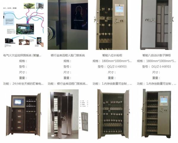 主要設(shè)備:數(shù)控液壓沖床、數(shù)控折彎機、數(shù)控剪板機、數(shù)控萬能銑床、數(shù)控點焊機、進口靜電噴涂生產(chǎn)線。主要產(chǎn)品:智能槍彈保險柜、智能槍庫專用門、生物指紋聯(lián)網(wǎng)保險柜、生物指紋聯(lián)網(wǎng)提款箱、銀行設(shè)備大型聯(lián)網(wǎng)管理系統(tǒng)、礦山炸藥庫、金庫房、金庫門、ATM機銀行專用守護神、電器安全智能預(yù)警系統(tǒng)、監(jiān)控、遠程監(jiān)控聯(lián)網(wǎng)系統(tǒng)、安防器材、鈔票清分機、防盜報警器、點鈔機、警用裝備、防彈衣、防彈頭盔、銀行珠寶箱、檔案密集架、信號屏蔽儀、計算機軟件開發(fā)、智能鎖具研發(fā)、生產(chǎn)、銷售等產(chǎn)品。